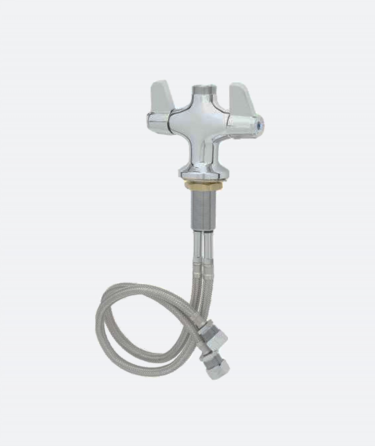 Base mezcladora Single Hole a cubierta (sin cuello). Grifo mezclador de montaje en cubierta de un solo orificio con cuerpo de latón cromado pulido, cartuchos de cerámica, manijas de palanca, mangueras de suministro de acero inoxidable flexible de 18 «con conexiones de compresión de 1/2» NPSM / 5/8 «OD. Certificado según ASME A112.18.1 CSA B125.1, NSF 61-Sección 9 y NSF 372.