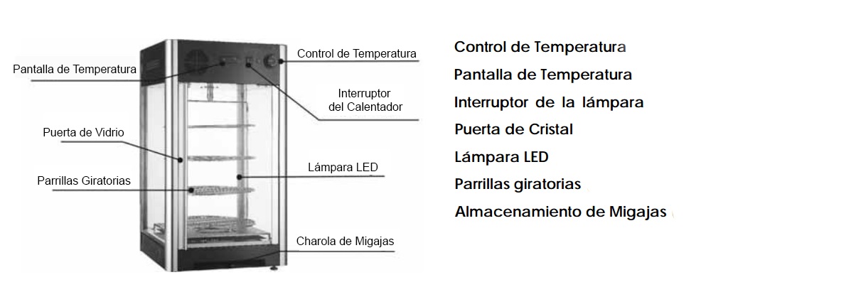 EXHIBIDOR DE ALIMENTOS CALIENTES GIRATORIA RTR-108L
