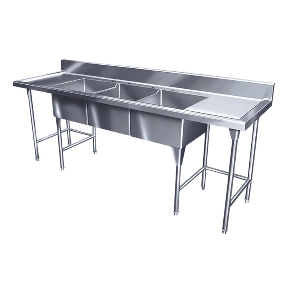 FREGADERO TRIPLE TARJA PARA LOZA TIPO 201 DE 250X70X90 8P