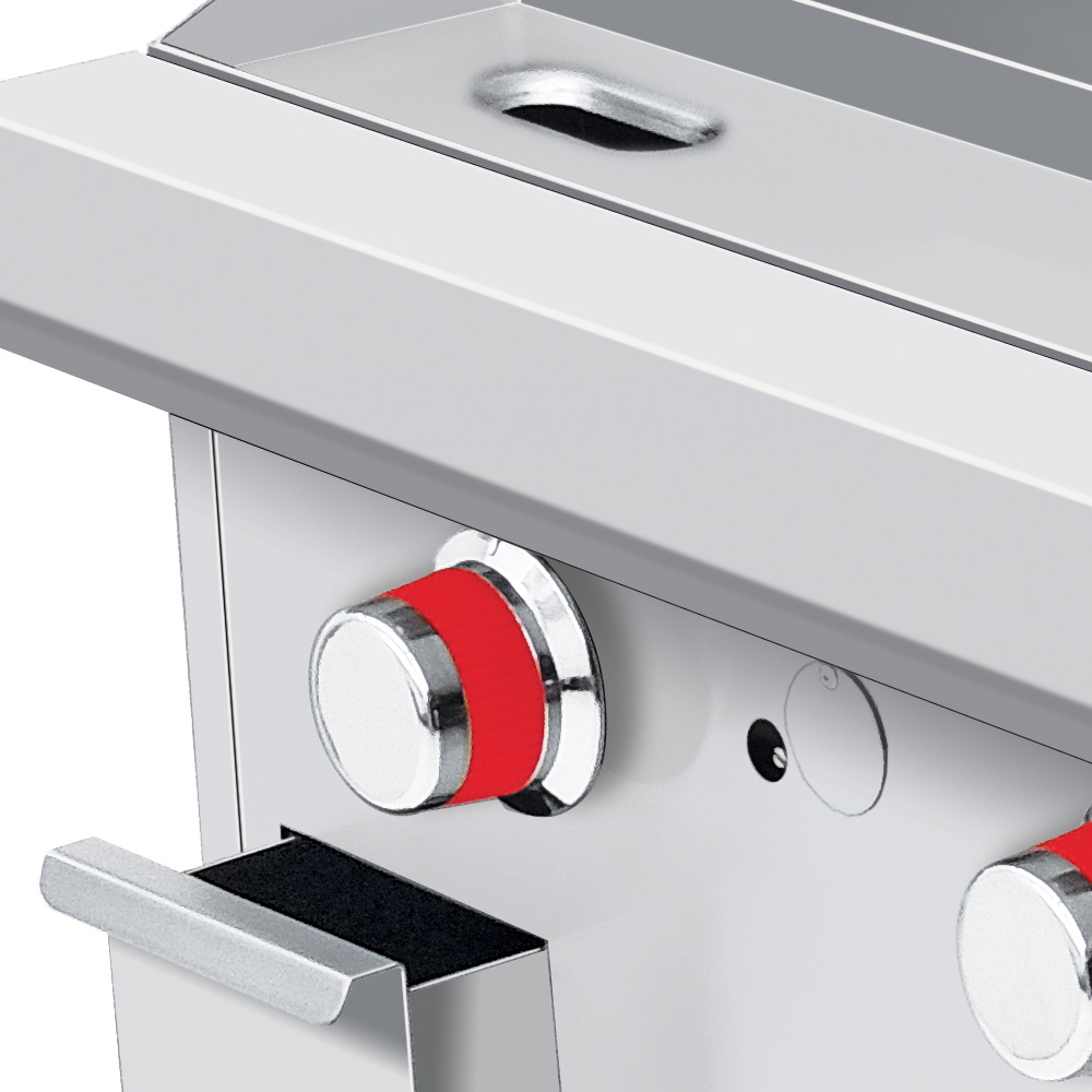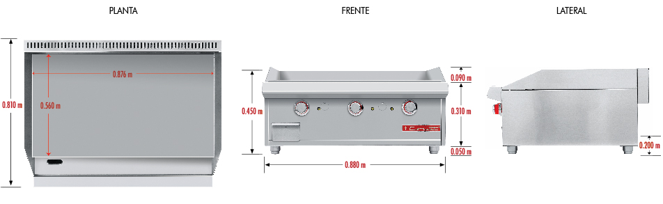 Plancha de cold rolled steel con 3 quemador en «u». Plancha cold rolled steel 3/4″ de espesor con un área útil de: frente: 0.876 m, fondo: 0.560 m.