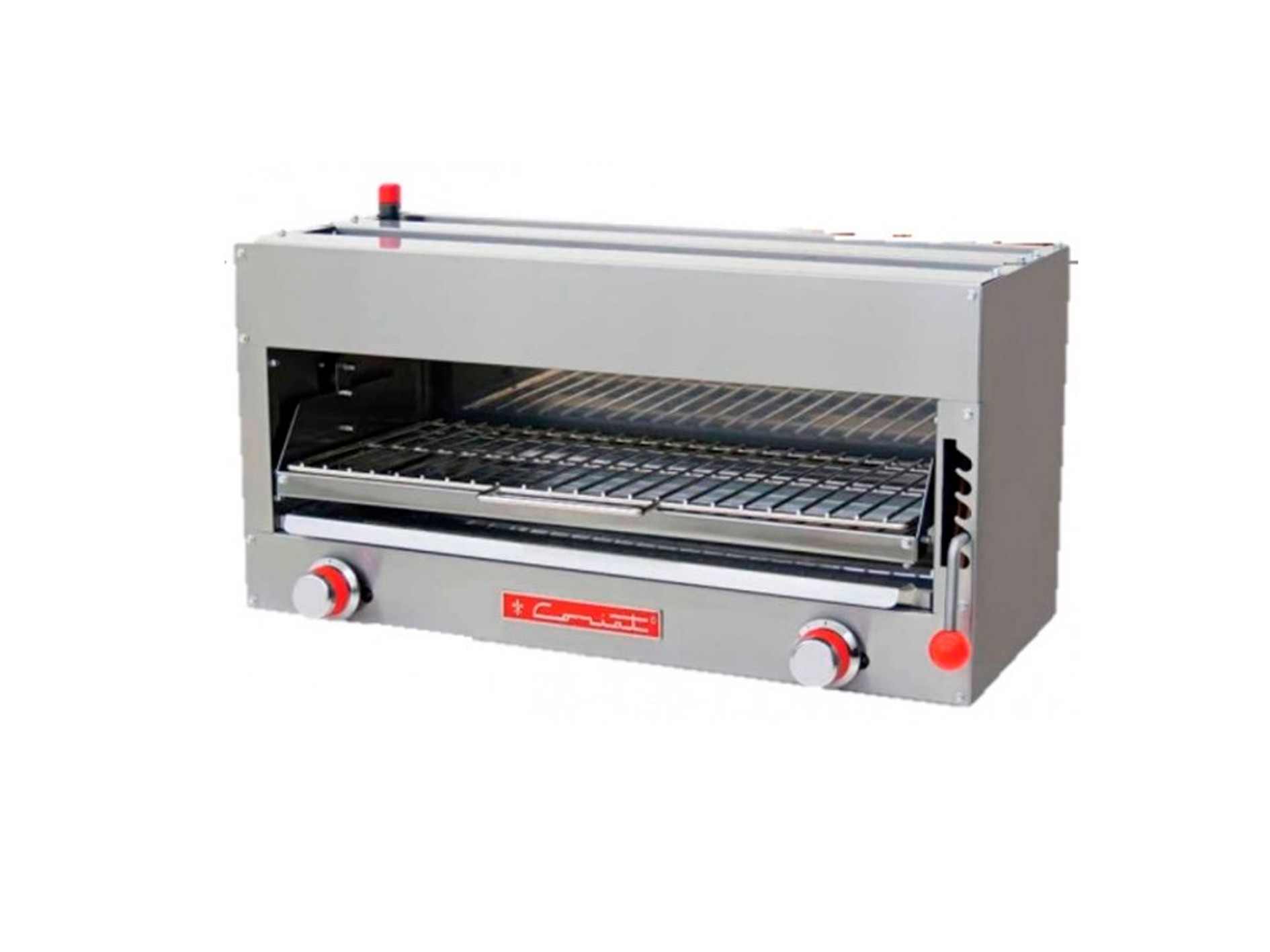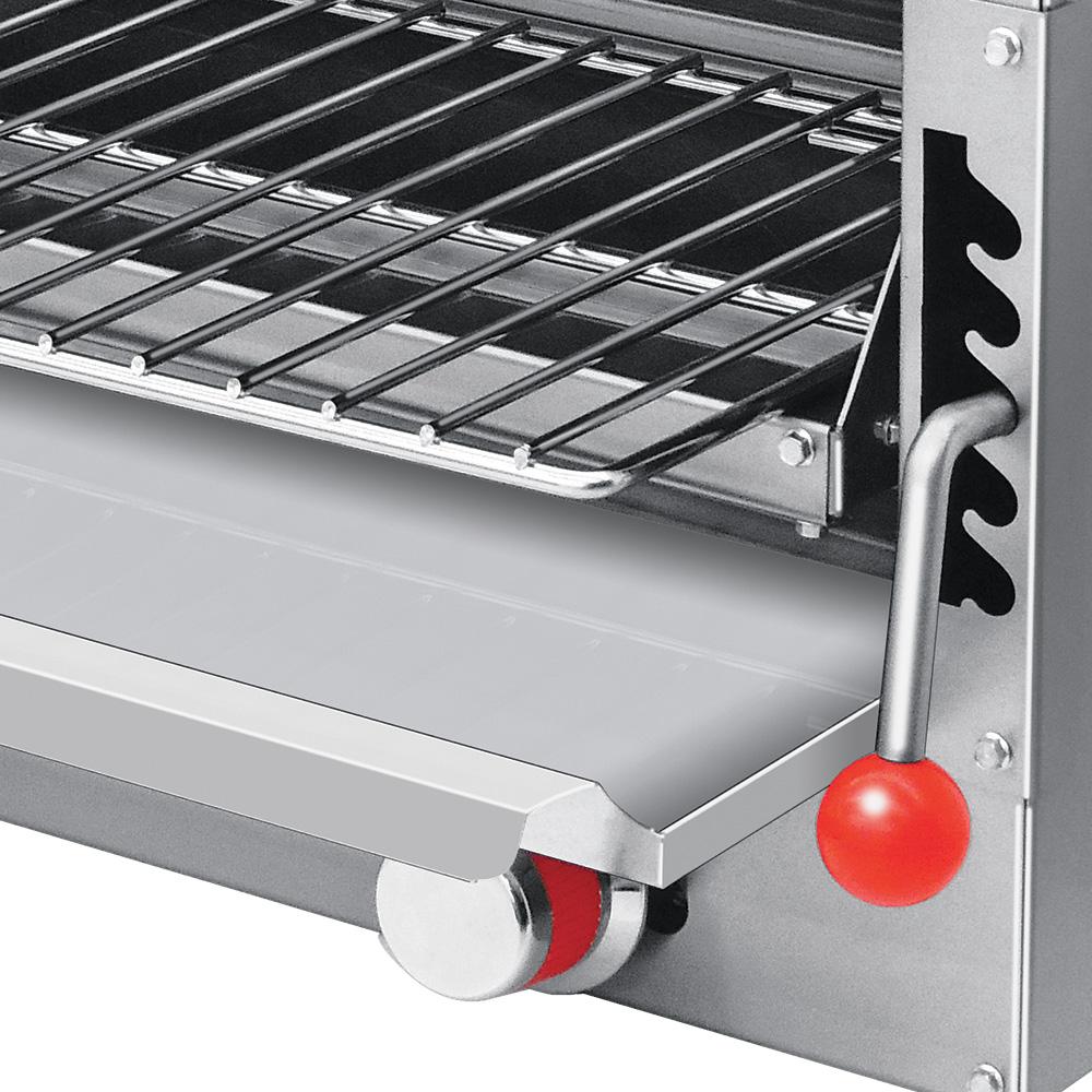 Salamandra para 1 ó 2 platos con parrilla ajustable a cinco diferentes posiciones. Capacidad para 2 platillos de 0.250 m de Ø.