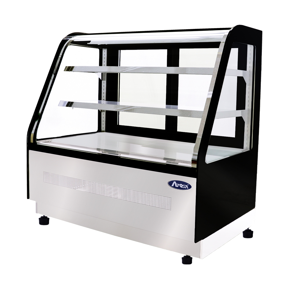 Vitrina refrigerada curva de piso, de 552 Lts. de capacidad. Vitrina refrigerada de piso curva.